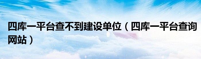 关于四库一平台查不到建设单位,四库一平台查询网站这个很多人还不知道,今天小六来为大家解答以上的问题,现在让我们一起来看看吧!