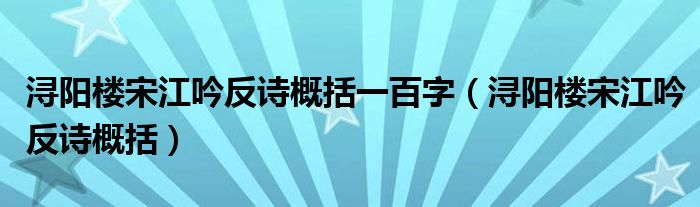 浔阳楼宋江吟反诗概括一百字(浔阳楼宋江吟反诗概括)