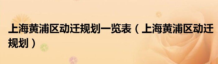 上海黄浦区动迁规划一览表(上海黄浦区动迁规划)