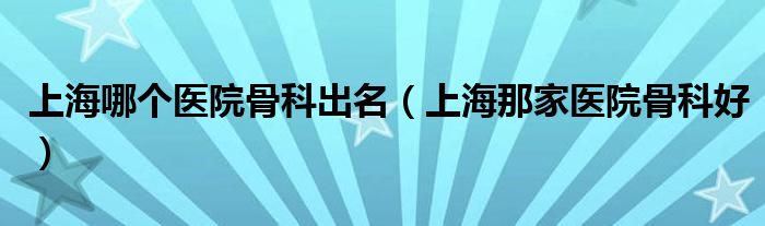 上海哪个医院骨科出名(上海那家医院骨科好)