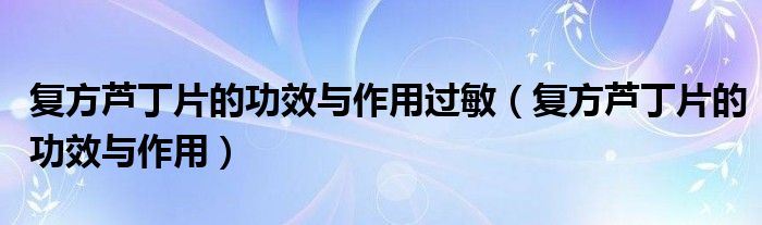 复方芦丁片的功效与作用过敏(复方芦丁片的功效与作用)