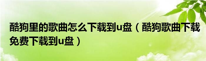 酷狗里的歌曲怎么下载到u盘(酷狗歌曲下载免费下载到u盘)