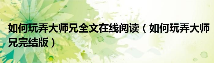 如何玩弄大师兄全文在线阅读(如何玩弄大师兄完结版)